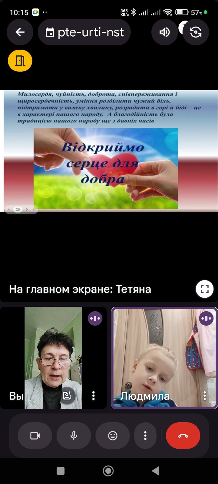 Особливого значення для психологічного розвантаження малюків набувають зустрічі в режимі реального часу за допомогою гаджетів. Такі зустрічі доречно проводити 2 рази на тиждень у групах передшкільного віку, а саме: з дітьми молодшого та середнього дошкільного віку (у разі згоди батьків) – не більше 10 хвилин, з дітьми старшого дошкільного віку – до 15 хвилин. Пропонуємо проводити заняття в режимі он-лайн конференції за таким графіком: молодший дошкільний вік – понеділок, середа з 10.00, середній дошкільний вік – вівторок, п’ятниця з 10.00, старший дошкільний вік – вівторок, четвер з 10.30.