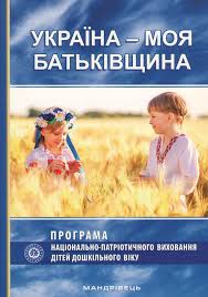 «Україна – моя Батьківщина». Парціальна програма з національно-патріотичного виховання для дітей середнього та старшого дошкільного віку. Авторський колектив: Кичата І. І., Каплуновська О.М., Палець Ю.М.; за науковою редакцією Рейпольської О.Д. Тернопіль: Мандрівець, 2016 (Схвалено комісією з дошкільної педагогіки та психології Науково-методичної ради з питань освіти МОН України. Лист ІМЗО від 25.03.2016 №2.1/12-Г-85, Прпотокол № 3 від 21.06.2022. Зареєстровано у Каталозі за № 1.0009-2022)