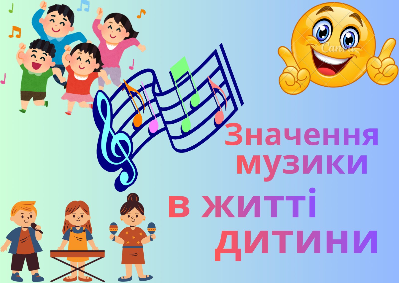 Музика відіграє ключову роль у житті дитини, сприяючи її всебічному розвитку — від когнітивного та емоційного до фізичного. Вона покращує моторику, увагу та пам’ять, розвиває мовленнєві та математичні навички, стимулює уяву та креативність. Також музика допомагає формувати емоційну сферу, виховує естетичний смак та позитивні якості особистості, а також може бути важливим інструментом для зміцнення зв’язків у сім’ї.