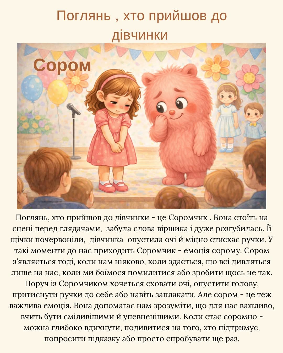 Розмова-гра в картинках, де після кожного випадку, діти знайомляться з цікавим пухнастиком, що уособлює в собі певну емоцію. Пограйте зі своєю дитиною!